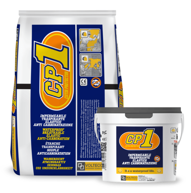 CP1 je balený v 15 kg vreciach (prášok) + 5,7 kg vedrách (živica).
